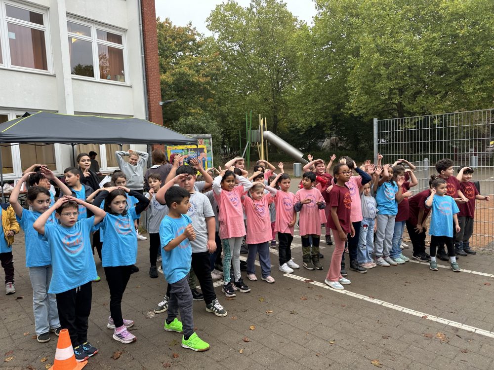 Am 7. Oktober fand unser jährlicher Spendenlauf statt. Bei herbstlichem Wetter, aber milden Temperaturen, trafen sich die Jahrgänge jeweils zu einer festgelegten Stunde auf dem großen Schulhof. Dort wurde schon früh am Morgen ein Rundlauf abgesteckt, ein Pavillon mit Sitzbänken zum Ausruhen und mit Trink-Station für die jeweiligen Klassen eingerichtet sowie eine Apfelstation aufgebaut, bei der man sich zwischendurch stärken konnte.