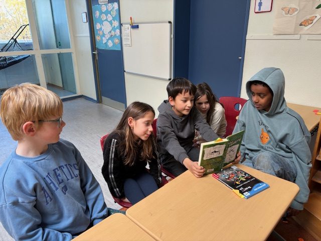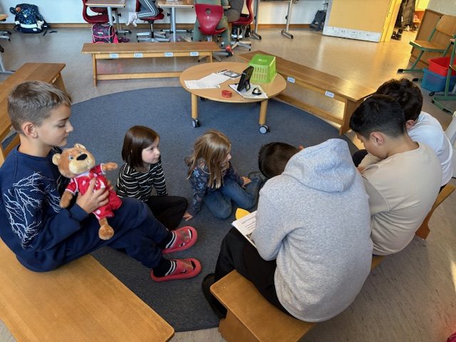 Am Freitag, den 21.11. war die Vorfreude groß. In der 4. Stunde sollten die großen Kinder aus den 4. Klassen in den 2. Klassen aus ihren selbst ausgewählten Lieblingsbüchern vorlesen. Zuvor wurden in der 2c Gruppen gebildet und Orte in der Klasse ausgesucht, die sich zum Vorlesen eigenen. Ganz schnell stand fest, dass sich der Gruppenraum, der Sitzkreis, die Spielecke und der Flur dafür eignen. Am Anfang der 4. Stunde standen auch schon 9 Kinder aus der 4c bei uns vor der Tür. Etwas aufgeregt fingen die Kinder, die sich meist zu Tandems zusammengesetzt hatten, an aus Büchern von den Drei ???, Gregs Tagebuch und anderen spannenden Kinderbüchern vorzulesen. Die Kinder aus der 2c machten es sich gemütlich und hörten interessiert den vorlesenden Kindern zu. Eine schöne Veranstaltung sowohl für die großen als auch für die kleinen Kinder. Und wer weiß, vielleicht liegt das eine oder andere vorgelesene Buch bald als Geschenk unter dem Weihnachtsbaum.