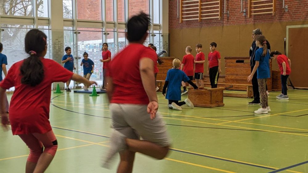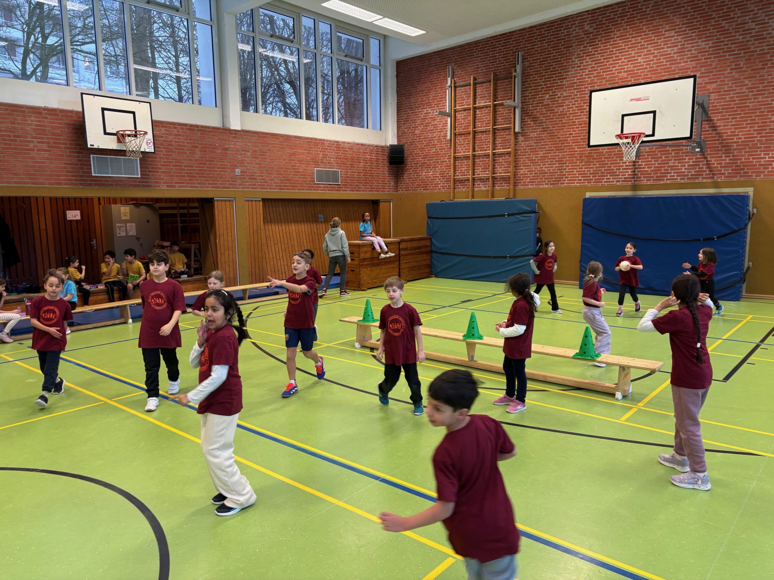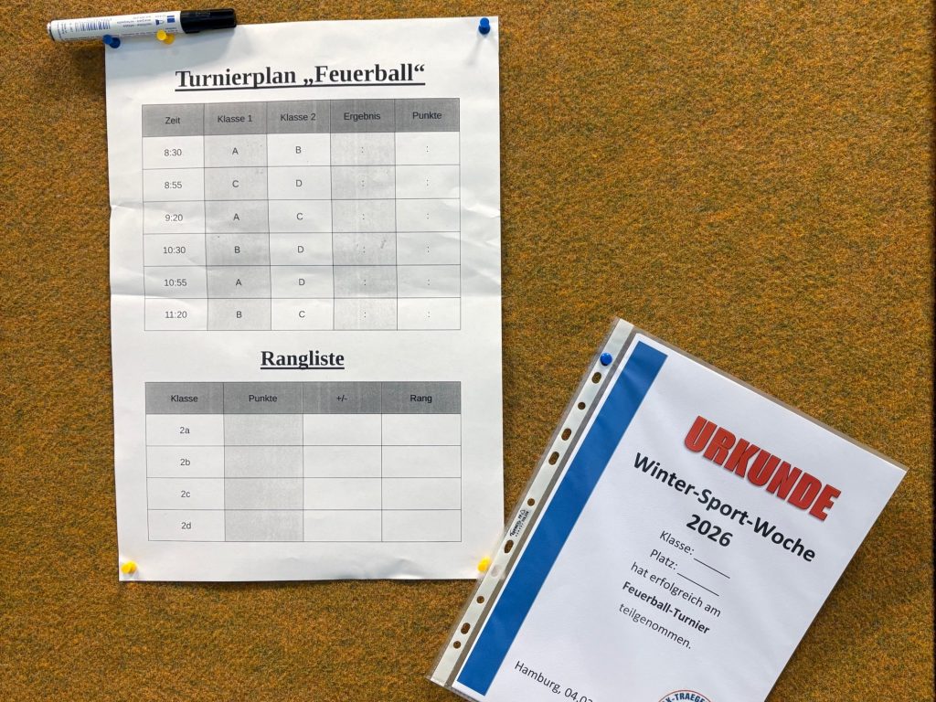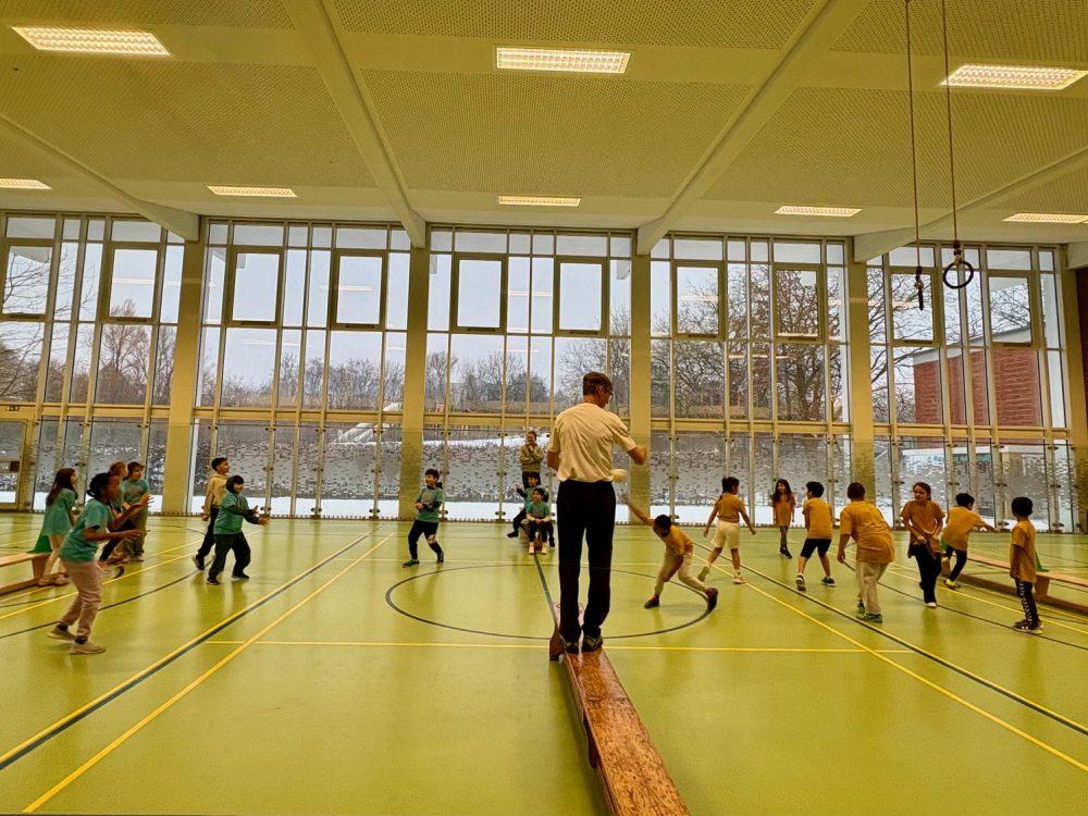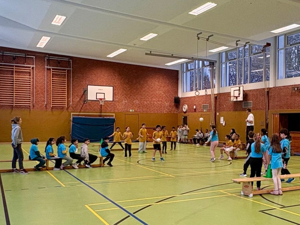 Vom 2. Februar bis 6. Februar fand unsere Wintersportwoche statt. Und dieses Mal passte das Wetter auch zu unserer Veranstaltung. Schon Wochen vorher haben die Sportlehrkräfte mit ihren Klassen fleißig in der Turnhalle geübt. Am jeweiligen Turniertag waren Aufregung, Vorfreude, Motivation und Ehrgeiz der Kinder groß. Am Montag hatten die Vorschulklassen einen tollen Geräteaufbau als Bewegungslandschaft. Die Kinder konnten sich hier richtig austoben. Am Dienstag startete der Turniertag mit Jahrgang 1 und dem Spiel „Läufer gegen Werfer“ gefolgt von Jahrgang 2 am Mittwoch und dem Spiel „Feuerball“. Am Donnerstag war der Jahrgang 3 mit „Blitzball“ dran und am Freitag wurde das Brennballturnier in Jahrgang 4 durchgeführt. Jedes Spiel war hart umkämpft und die Kinder gaben bis zum Ende des Vormittages ihr Bestes, um zu gewinnen. Zum Glück hielten sich die meisten Kinder an die Spielregeln und spielten fair.
